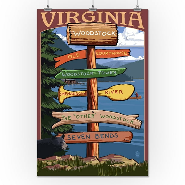 Woodstock Virginia Destination Signpost Lantern Press Artwork 24x36 Giclee Gallery Print Wall Decor Travel Poster Walmart Com